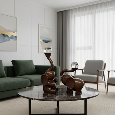 Set de 2 Statues Bébé Éléphants Noirs