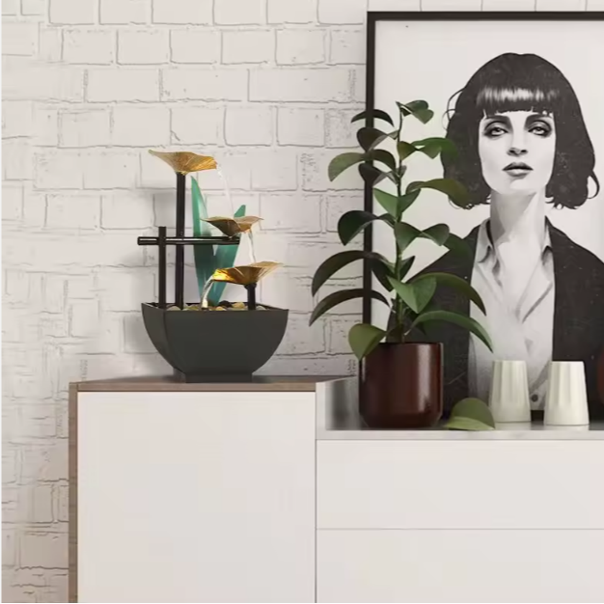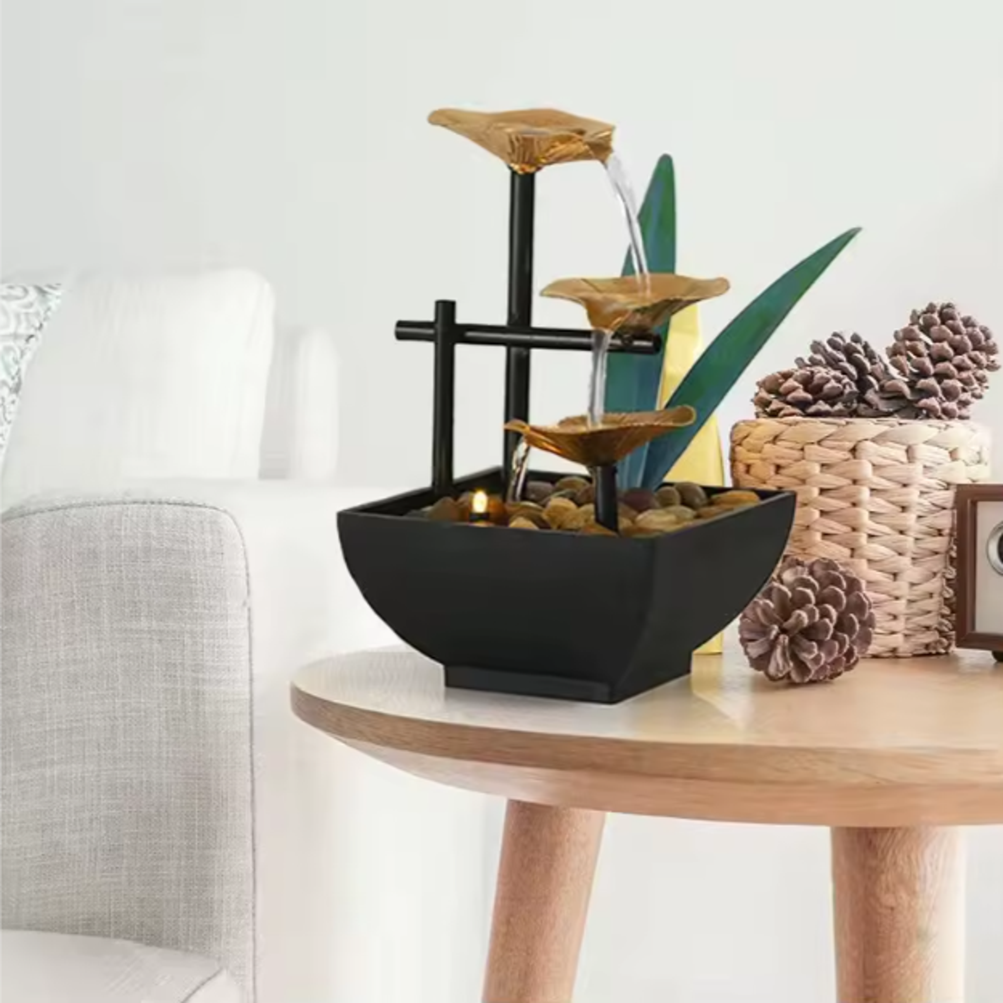 Offrez à votre intérieur une ambiance zen et apaisante avec cette fontaine décorative d’intérieur. Idéale pour apporter une touche d’élégance, de sérénité et de fraîcheur dans un salon, bureau ou entrée, elle associe le doux murmure de l’eau, un design soigné et un éclairage LED doux pour un effet relaxant et décoratif.